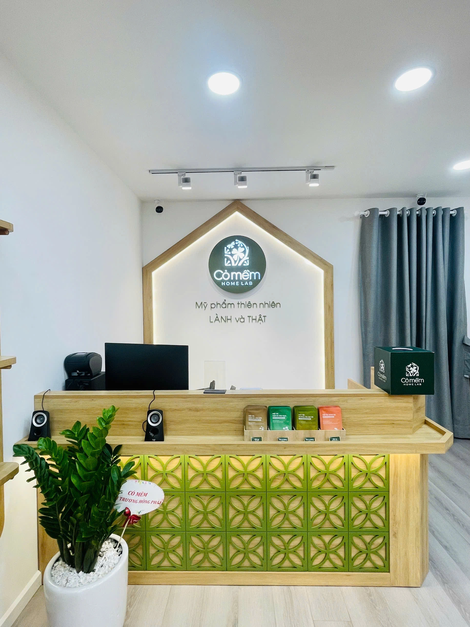 Không gian cửa hàng được bài trí gọn gàng, xanh mát với hoa lá, cỏ cây, ánh đèn vàng dịu nhẹ, hương thơm dễ chịu, thanh mát… Tất cả tạo nên một không gian đậm chất nhà Cỏ, chính là điểm đến lý tưởng giúp bạn xua tan đi muộn phiền, lo lắng ngoài kia, chỉ còn sự thư giãn, thoải mái.