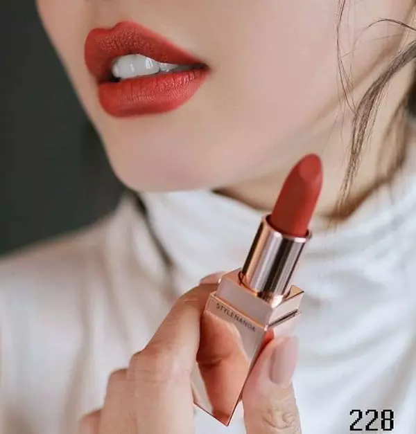 3CE là thương hiệu mỹ phẩm đến từ Hàn Quốc, một thương hiệu mà đã quá quen thuộc với các tín đồ làm đẹp. Thỏi 3CE đình đám với chất son lì nhưng lại không bị bột, cũng không bị nứt rãnh môi hay gây nặng môi. Với sắc đỏ đất thời thượng và thiết kế vỏ màu vàng hồng tinh tế sẽ trở thành một thỏi son mà cô nàng nào cũng muốn sở hữu. Tông son đỏ đất này thì bạn có thể đánh lòng môi khi đi học hoặc đánh full môi trong những buổi dự tiệc thì đều rất đẹp.