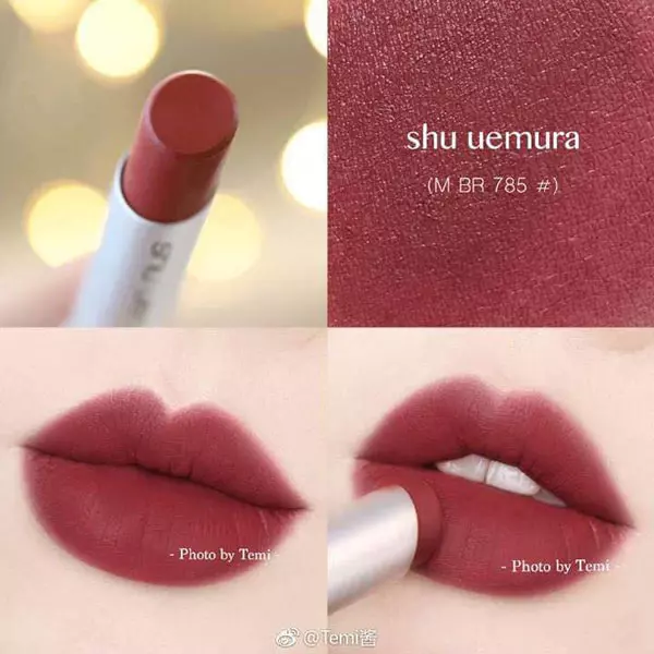 Shu Uemura là dòng son luôn có mặt trong top son những chị em hay săn lùng. Tông son đỏ hài hòa pha trộn thêm tông nâu đất tạo nên một màu đỏ đất cực thời thượng và chất chơi.  Rất phù hợp cho những cô nàng có tone da trắng. Bên cạnh đó, các cô nàng da ngăm khi diện em son này cũng không kém phấn sexy đó nha.