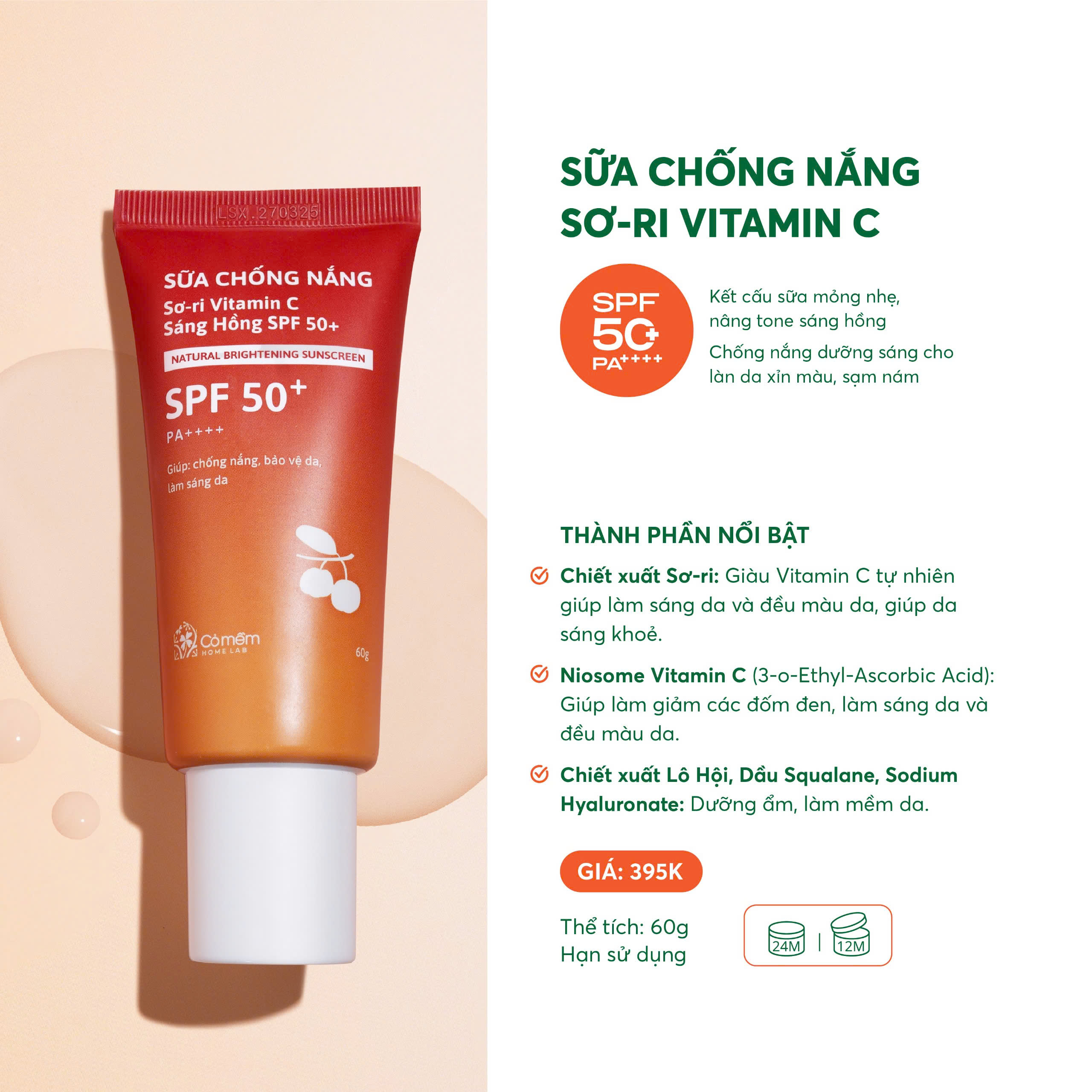 Sữa chống nắng Sơ-ri Vitamin C Sáng Hồng SPF 50+ PA