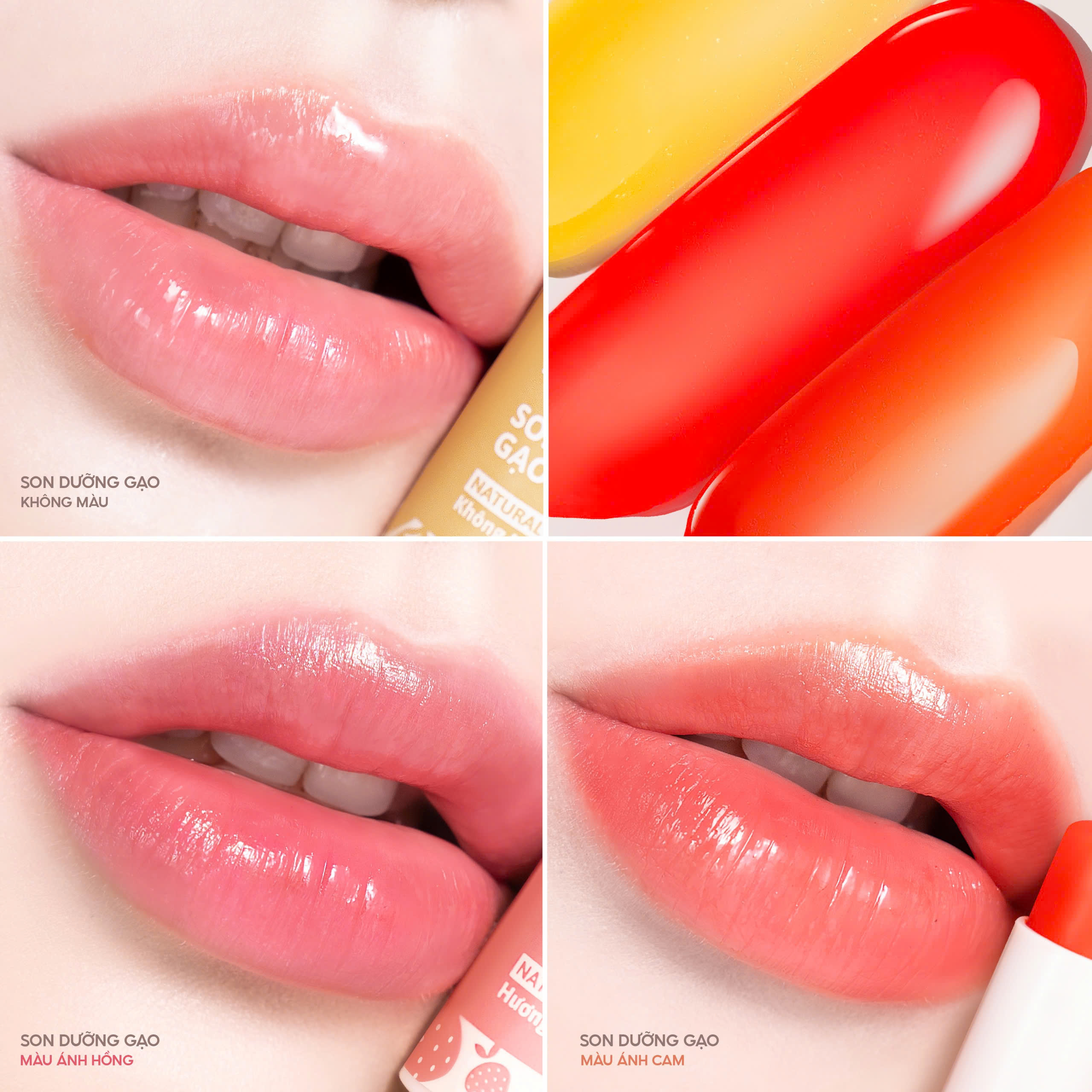 Son Dưỡng Gạo - 3 Lựa Chọn Hồng/ Cam/ Không Màu